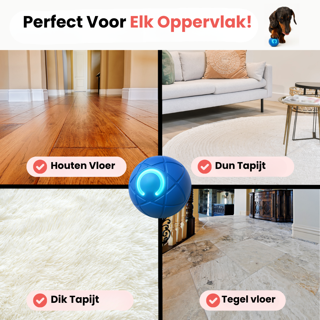 Zet het apparaat aan, plaats het op de grond en kijk hoe uw hond er urenlang vrolijk achteraan rent, erop springt en zich vermaakt!